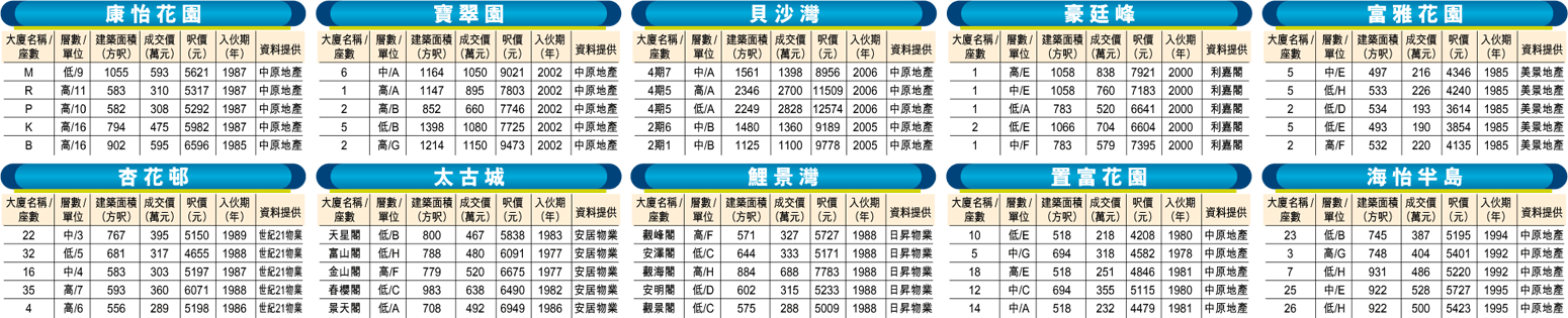 康怡花園5月份共錄55宗成交,較上月減少20%,但呎價升勢持續,上升4.5%,現時平均呎價為5,460元。利嘉閣分行經理施遠洋表示,現時屋苑放盤量約200個,每方呎叫價約6,000元。,屋苑剛錄得一宗成交,做價更創「下康」(N、P、Q及R座)2房單位海嘯後新高,以每方呎價近5,800元易手。單位為R座高層02室,面積588方呎,成交價339.8萬元,每方呎價5,779元。據了解,原業主於04年底以253萬元購入物業,自住至今,現將之沽出,賬面利潤86.8萬元,樓價上升34%。