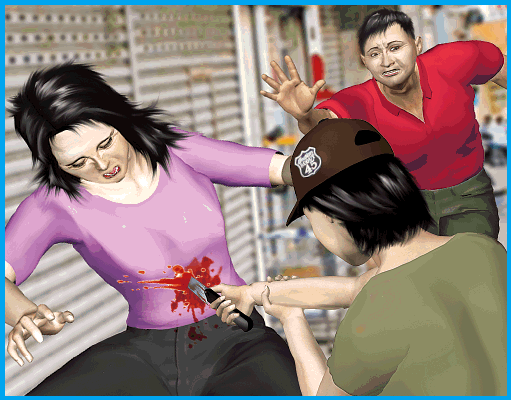 據街坊稱,有人見黃婦出現立即撲出,揮刀向黃婦刺腹多下,一邊大叫:「斬X死你,斬X死你……」黃婦身中多刀倒地,此時,現場一間汽車用品公司東主「肥仔光」聞聲走出查看,見狀衝前以擒拿手捉住行兇女子右手,將手上利刀打落地上。混亂間,黃婦負傷逃跑,但跑了約50米終不支倒地。