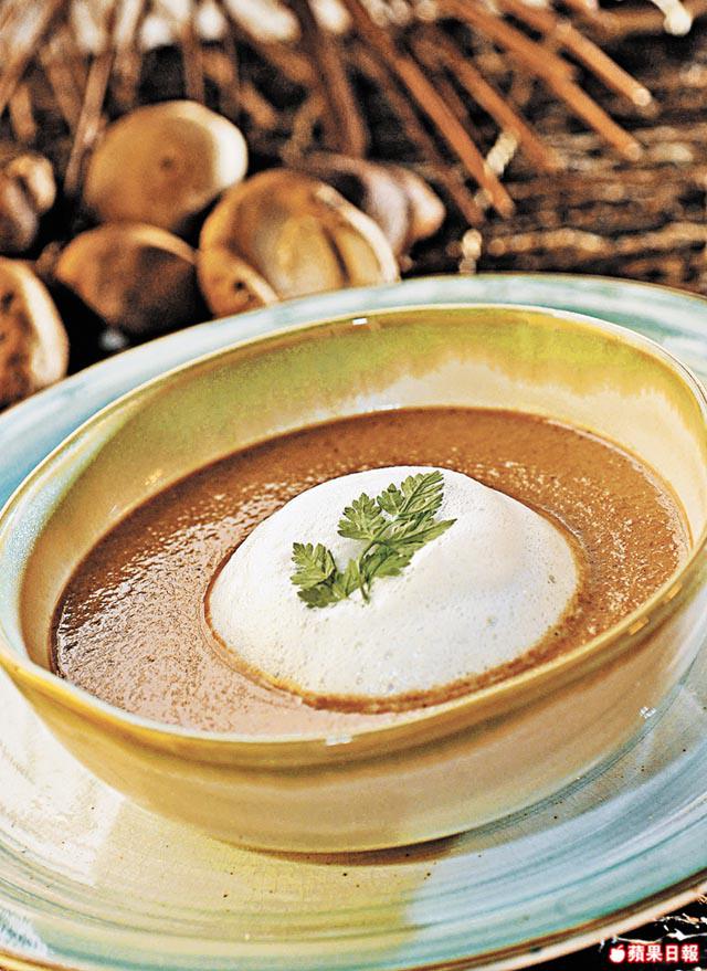 乾牛肝菌100克、白菌/鮮冬菇/洋葱各30克(切片)、乾葱/蒜頭各10克(切片)、白酒/鮮忌廉各30毫升、雞湯500毫升、鮮奶50毫升、鹽/橄欖油/黑胡椒/香草各少許