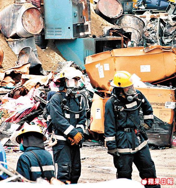 現場是屏山橋旺路一個廢料回收場,昨晨8時許,場內一批桶狀化學品突然起火。現場火勢不算猛烈,但灰灰黑黑的濃煙捲上半空,並不斷傳出「砰、砰」聲響。消防員接報趕至開喉射水,豈料卻發生化學反應,火勢越燒越猛烈;了解後得悉該批是鋰金屬,不能射水,於是調派泡沫車到場;至下午2時才將火救熄。