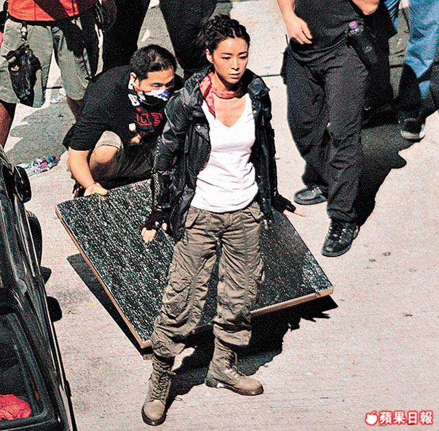 陳木勝執導的電影《全城戒備》,由郭富城、吳京和張靜初主演,由於該片是以科幻動作片為主,故戲中不乏武打鏡頭,前晚該片在九龍灣封街拍攝武打戲,還有吊臂車供演員吊威吔之用。吳京拍攝吊威吔武打場面,如空中飛人一樣,雖然動作鏡頭甚有難度,但未有難倒他,吳京身穿一套黑色西裝,右手套上一隻特製機械手,與對手拳來腳往,十足超人咁打得。吳京不用埋位時,即十分豪情地解開衫鈕抖凉,又大耍鐵鏈。張靜初也不甘示弱,束起秀髮一身型格打女裝扮,在戲中大展身手打到落花流水。採訪、攝影:羅光