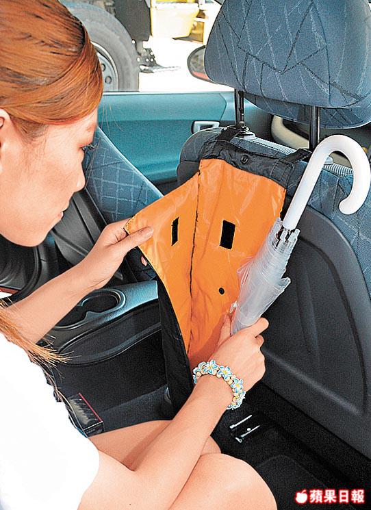 掛喺頭枕位方便打開,最多可放入三把遮。