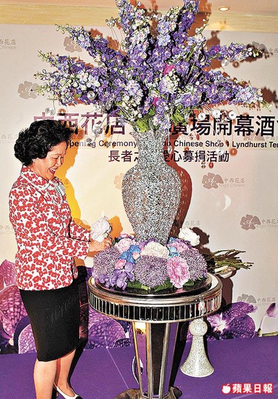 陳方安生、梁愛詩和何超瓊等名人常光顧、擁有60多年歷史的中西花店,昨日在擺花街開設新店。老主顧陳方安生主禮兼幫手插了一盆名為「喜悅之光」的花藝擺設作慈善拍賣,為替長者做白內障手術的「長者之光」籌款。