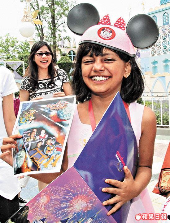 《一百萬零一夜》(SlumdogMillionaire)三位小童星昨日完成4日3夜訪問離港,三人與監護人離開前到迪士尼樂園遊玩,夢幻氣氛令小朋友疲勞全消,眾人於園內大玩特玩,赫德加更興奮得大叫:「Excellent!」