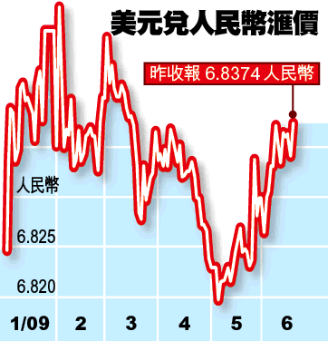 人民幣昨收報6.8374兌1美元,下跌33點子。
