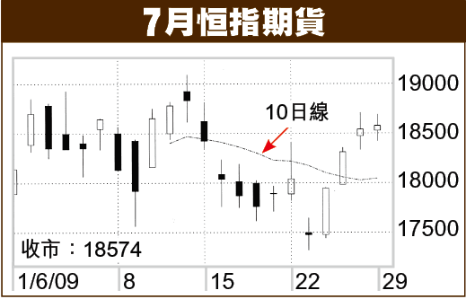 昨日期指大部份時間皆做高水,而期指未平倉合約只得68497張,略嫌不足,轉倉價約在18400點附近。以此數據推斷,只要恒指跌穿18000點,便可順勢跟沽;若升破18800點,淡倉宜先行退避。