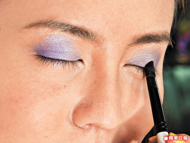 另一個港女妝的特別,就是粗黑上下眼線,卻沒有畫眉,Ava話想化大眼妝,不一定是靠眼線,「平時看到香港女生畫眼線,畫得很粗很黑,看來很濃妝,且感覺很惡,眼線應越近睫毛根位為最自然,畫下眼線畫1/3位便夠。眼影方面,不妨用充滿夏日色彩的紫色,帶有少少閃粉,眼妝看來清新且不俗氣。」