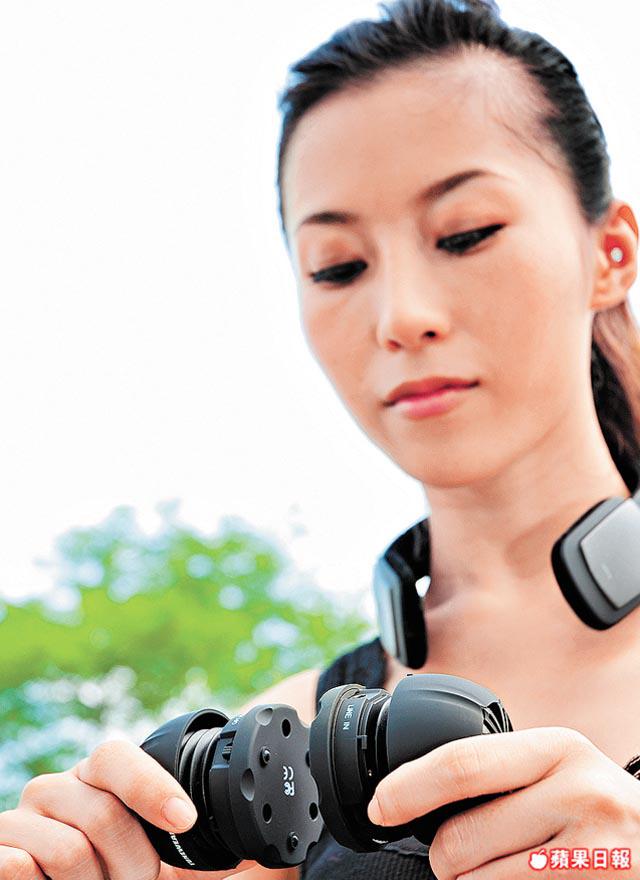有趣!有趣!估不到她手上那個手榴彈,原來是個分體式小喇叭;頸上那恍如練槍時戴上的耳罩,卻又是藍芽耳機。人家話炸機,原來不只是無影的高聲量,還可以好實在炸喺 外形上,感覺SoCool!