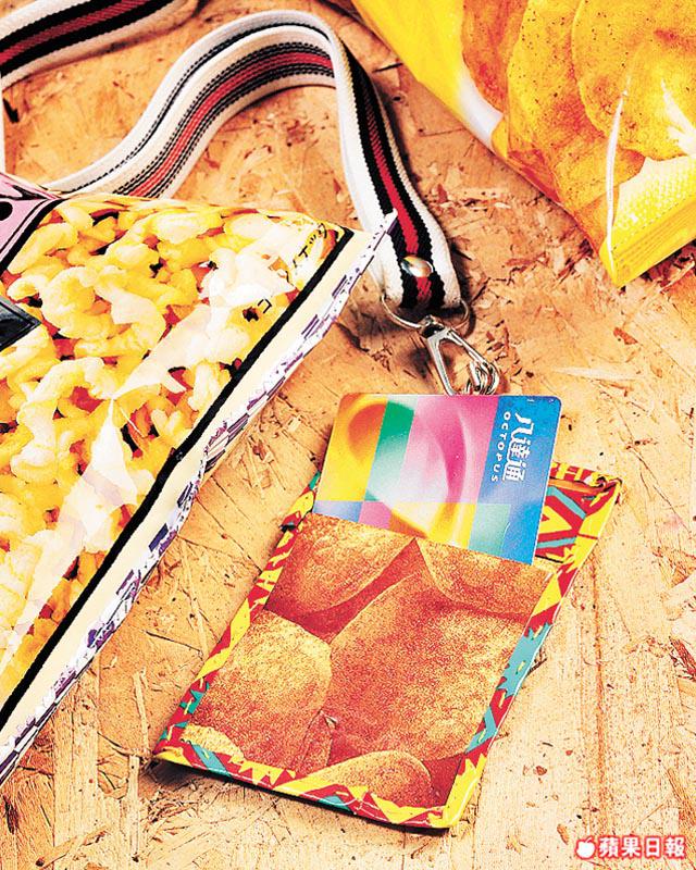 用薯片袋製成八達通套相信最啱饞嘴的小朋友,利用薯片上的圖案拼合出迷你版的薯片袋,配上頸繩,猶如把薯片隨身帶般,可能還收望梅止渴之效。