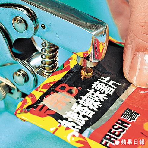 薯片袋內佈滿油迹,只要用洗潔精清洗後,以乾布抹乾便可。