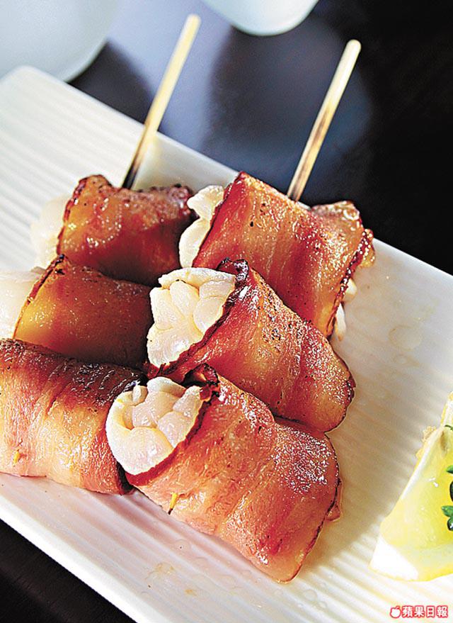 以煙肉包着荔枝來燒,配搭少見。煙肉燒過後滲出油份,滿佈焦脆特別香口。荔枝清甜,平衡了煙肉的油膩感。