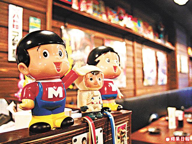 走進八王子居酒屋,時光倒流數十年。以昭和風作主題的八王子,裝潢懷舊,牆上貼滿六十年代的電影海報,架上放滿鐵甲萬能俠等懷舊玩具,全部由日本搜羅回來。裝潢玩懷舊,食物也極傳統,流行創新的西日fusion菜式一律欠奉,如酒盜伴芝士和味噌蟹膏等,都是日本傳統,而且香港少見的菜式。入行廿載的大廚,不但師承日本師傅,選取材料大部份也來自日本,如酒盜和蟹膏等,令八王子的食物也很「和」味濃。