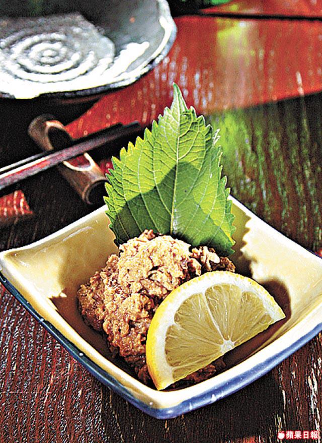 鯛魚剁碎,以鹽漬法製成酒盜,鹹鮮味濃郁,伴芝士條同食,佐酒一流。