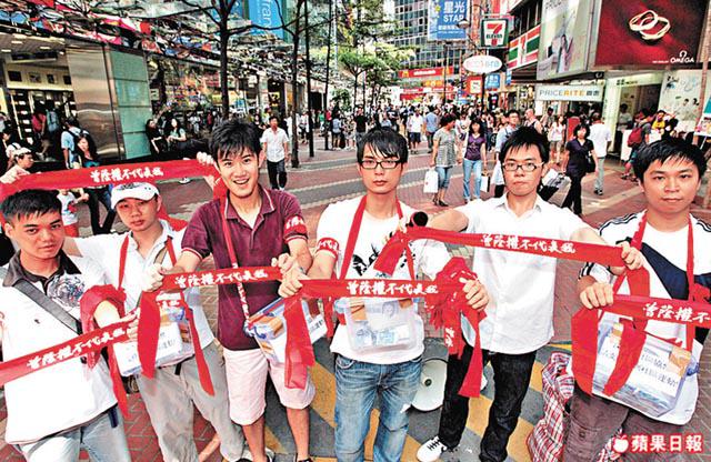 自稱「草民」的香港網民,昨日與十數位朋友高舉「推倒綠壩娘」、「中聯辦收皮」的標語,並手持兩隻「草泥馬」公仔上街。草民說,上街要抗議內地政府強制電腦安裝綠壩過濾軟件,妨礙內地網民獲取資訊的自由。「香港同內地經已連成一線,我哋要代表10億沉默嘅內地人發聲!」他認為,惟有支援內地民主運動,當內地享有民主,香港才有望普選。