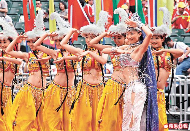 【本報訊】今年慶祝回歸12周年大巡遊以「團結.自強」為題,超過700個本地及內地表演團體參與,不少參加者悉心打扮慶祝回歸,沿途吸引大批市民圍觀。主辦單位指,參與人數逾4萬人,是歷來最高,各人以不同的造型及道具表達訴求。