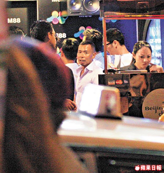 昨日凌晨近2時,身穿恤衫及牛仔褲的福仔與鄧浩光及三名年紀相若的男友人齊於蘭桂坊BitPoint酒吧夜蒲,當時眾人聚於吧台隊啤閒聊。現場見福仔面紅耳熱帶酒意,微絲細眼表情勁迷,但情緒高漲,身體隨着強勁音樂搖擺,又不時手舞足蹈,而大多時候他都夾在鄧浩光和一名衫背上印有「妖」字的男友人中間,他說得興奮時,更跟妖男擊掌來個givemefive。