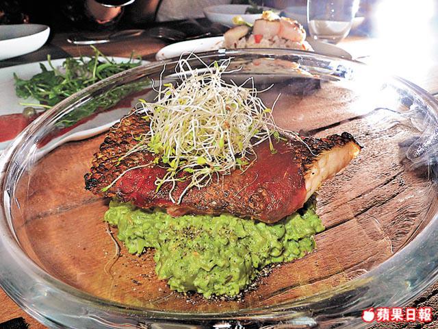 鱸魚皮脆肉滑,配枝豆茸同吃,味道清新。