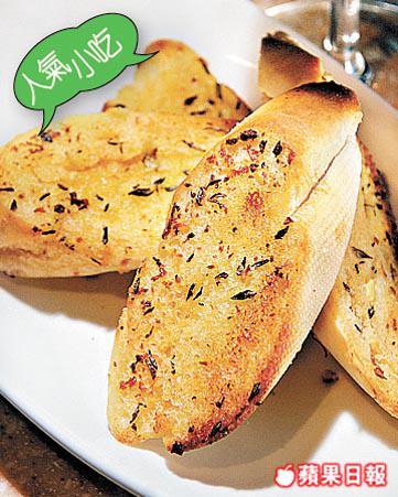 用上Paul特製的蒜茸醬,帶特別的香草氣味,烘得鬆脆,是店中最受歡迎的佐酒小吃。