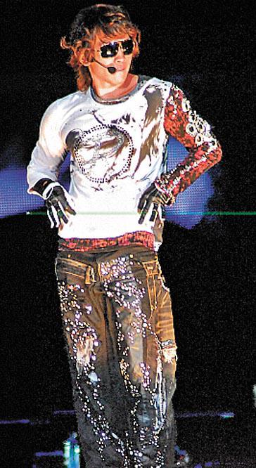 另一舞台王者,能歌擅舞的Rain,多變地時而西裝時而板仔,一身casualtee配glamorous牛仔褲之外,那雙長鐵甲金屬手套,是火力威猛的MJ靈感延續篇。