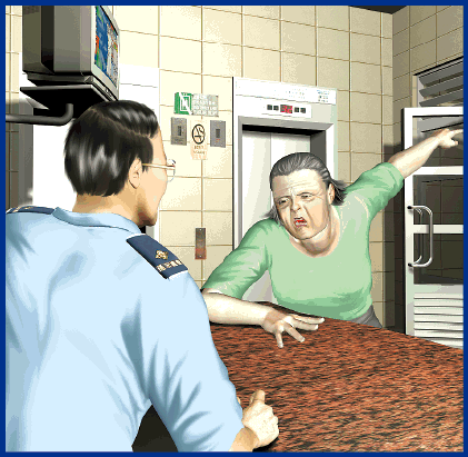保安員代為報警及派員上樓了解事件,心焦如焚的朱婆婆在大堂等候救護車時突然小便失禁,暈倒地上。稍後救護員到場發現她倒地昏迷,情況危急立刻急救,而黃伯經檢查傷勢較輕。