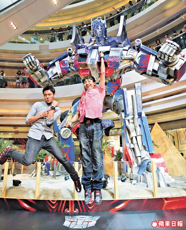 荷李活新片《變形金剛狂派再起》(Transformers:RevengeofTheFallen)昨日在旺角新世紀廣場舉行宣傳活動,吸引大批市民圍觀。諸葛梓岐、狄易達、陳偉霆和胡敏珊等嘉賓為現場1比1原大、高20呎的柯柏文揭幕,大會又安排狄易達和陳偉霆分別與機械人cosplayer比試。