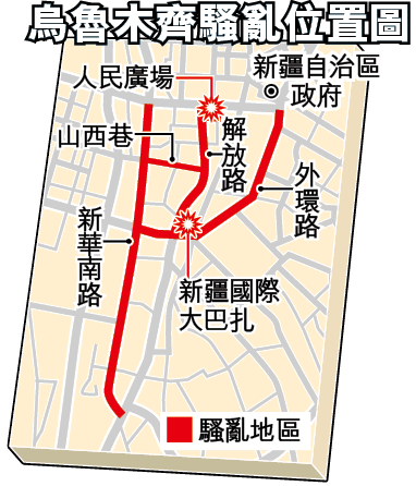 新疆首府烏魯木齊前日發生騷亂,至少造成156人死亡、828人受傷,預料死傷人數會攀升,今次是中共建政以來新疆發生死傷最嚴重的騷亂。當局指摘以「分裂分子」熱比婭為首的世界維吾爾代表大會,借上月廣東韶關港資工廠維族同漢族工人械鬥煽動鬧事。熱比婭否認,要求停止種族歧視。烏魯木齊騷亂昨日平息,但維族人示威蔓延至南疆喀什市,約300人上街。