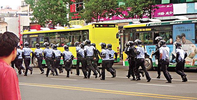 短片上還看到,有人驚慌走避,有人倒地後繼續被毆打,騷亂者向警車擲石,推倒警車,巴士亦成為攻擊目標,滿地玻璃碎和血迹,大批武警手持盾牌,騷亂者不斷向前推撞,衝擊武警築起的防線,武警出動水炮和催淚彈驅散人群。