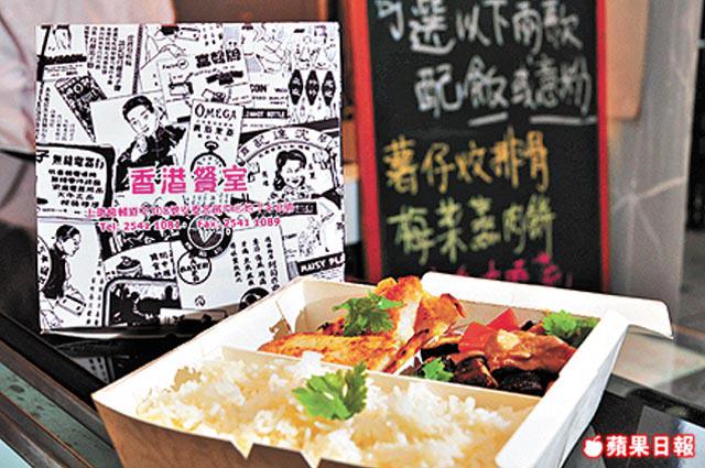 位於西港城對面的香港餐室,大玩懷舊feel,格局模仿舊式茶餐廳,卻比茶餐廳乾淨舒服。五月底,餐室更增設外賣部售賣兩餸飯,而且價錢便宜,瞬間吸引附近一帶上班族。為配合主題,餐室將推出懷舊特色紙飯盒,更可放在微波爐再次加熱,方便辦公室一族。除了兩餸飯,經理表示海南雞飯和手剁窩蛋免治牛肉飯亦有不少捧場客,原來免牛飯做法回歸傳統,用蠔油代替慣常用的茄汁,味道鹹而有蠔油鮮,牛肉則用刀剁足兩小時,份外鬆軟。至於吃海南雞飯,一定要大塊肉點泰式辣醬,初嚐先甜,慢慢滲出酸味,最後才是香辣,食慾大振。