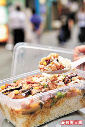 中環那裏最多人買飯盒?昭隆街是也,其中開業三十多年,以熱狗馳名的永樂園,其窩蛋免治牛肉飯亦是人氣之選。顧客主要是年輕人,大多是在銀行工作,而最繁忙時永樂園會派出七個外賣仔「行街」,老闆黎生說:「我們雖然不是最平,但中環區一帶的飯盒都維持在$25至$35的價位,而昭隆街因為近地鐵站,人流多,最旺就是中午12:30至1:30。」每日午市賣出約1,000隻熱狗和500個外賣,當中兩成外賣都是窩蛋免治牛肉飯,兩成是乾炒牛河,而OL就喜歡買雙腸熱狗。熱狗的醬是用蛋、醋、芥末和鮮牛油製成,比沙律醬更香滑,加上價格便宜,難怪成為女士午餐輕食之選。