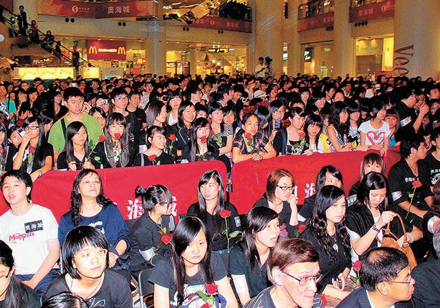 流行樂天王米高積遜猝逝,香港歌迷們同聲一哭,觀塘apm、屯門巿廣場和奧海城昨天分別舉行共4場悼念活動,每個會場都花盡心思,不但利用MJ的珍藏佈置,也放上心意牆或派發白手套,甚至播放MJ的經典金曲,讓歌迷向這位巨星作最後致敬。