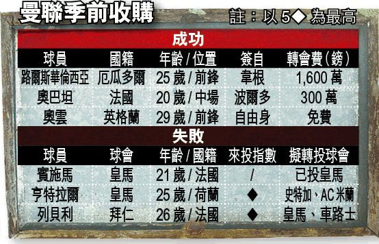 此外,據報曼聯欲羅致亨特拉爾一事亦受阻,需另覓目標。