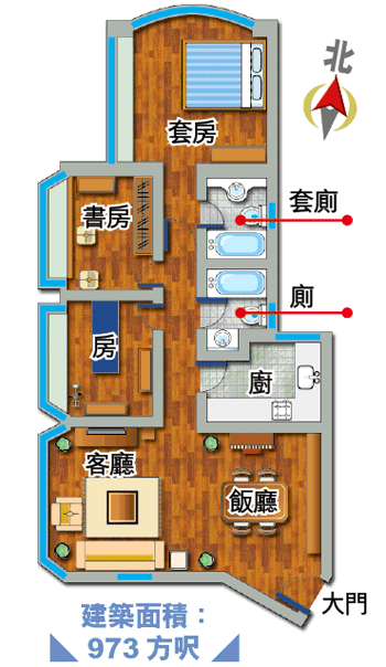 建築面積:分層973至1175方呎;複式1909至2302方呎