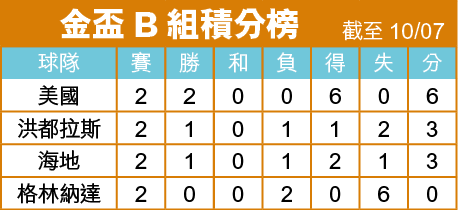 周六美洲金盃進行B組最後一輪分組賽,美國賽前兩連勝,今仗對海地保不敗即可穩奪首名,料起用部份後備兵上陣,1.2倍主W實在乏味,寧敲3.7倍「讓球主客和」「和局」。