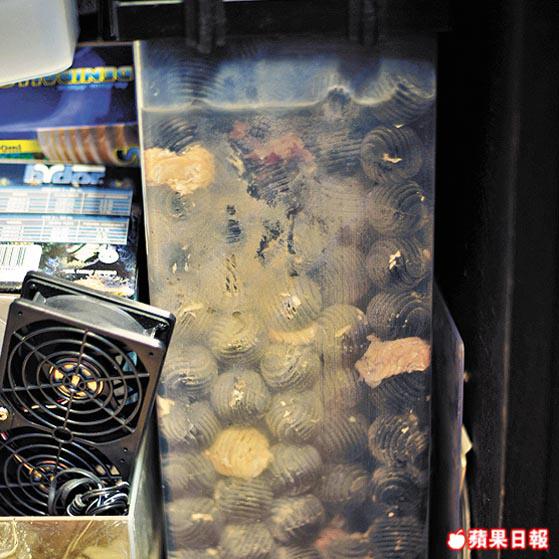 但以1:1這樣的濾水系統計,平日他要每三日換1/4缸水。至於濾材,一般都是生物環,用以養菌,以他6呎缸計,單單生物環就有80L。最特別是養魔鬼一般都會用上鹹水魚用的「黑白波機」,「黑白波機內的黑波是製造水流,白波是厭氧菌的食物,需要每兩年換一次。此機器用以製造厭氧性細菌,以分解NO囗(亞硝酸鹽)。」魔鬼魚的酸鹼度要求是6.5-7.5pH,屬中性,水溫約24-26℃,NO囗要求是0-10ppm,當然越低越好。至於鹽度,阿洋說有些書會教人下些鹽,但他絕不建議。