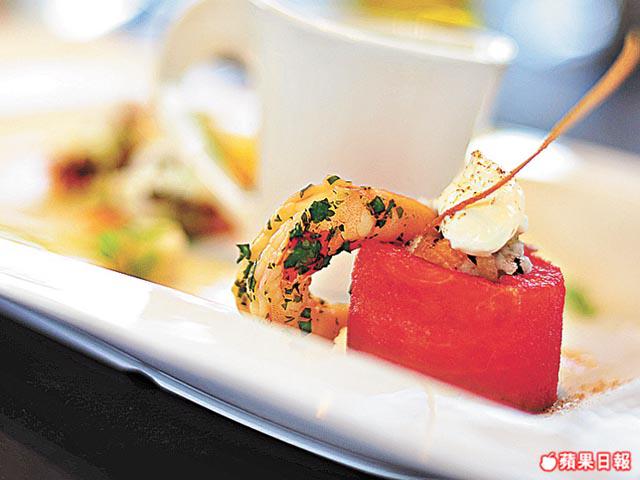 大蝦夠鮮味,配內有香橙蘋果等的西瓜水果盒,醒胃!