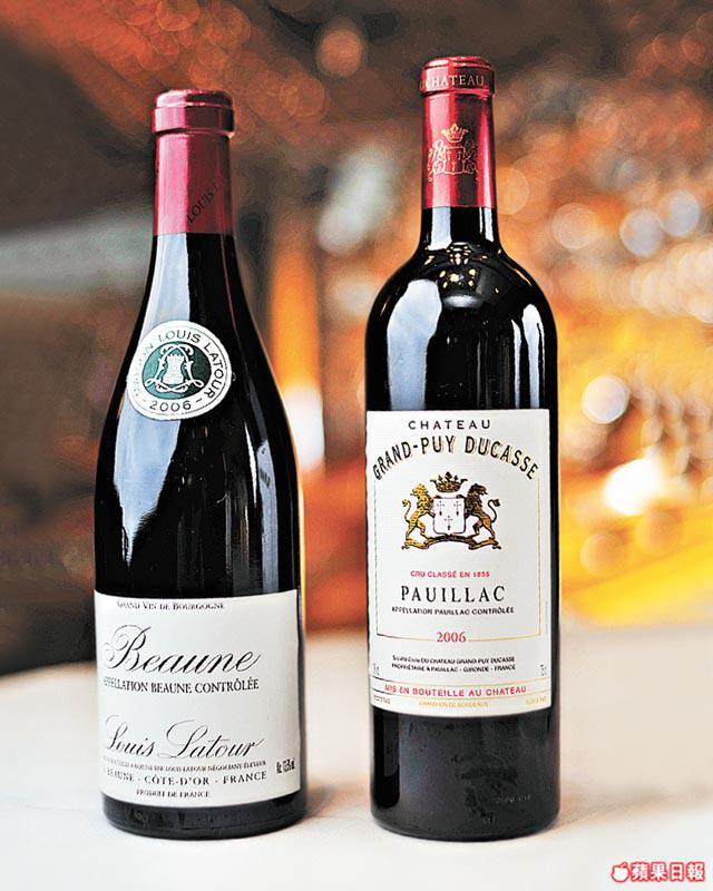 LouisLatourBeaune2006,Burgundy:法國紅酒,有提子香氣,味偏甜。$480支(鏞記)(左)