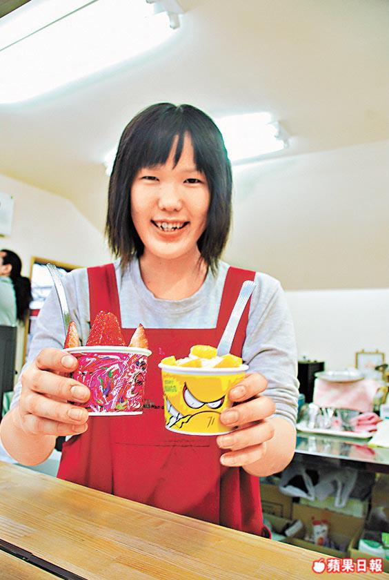 Hihi,我是伊豆的Tochiotome栃乙女士多啤梨!我跟章姬(Akime)及紅暈(Benihoppe)士多啤梨都是大富農場的千金小姐。爸爸飯田先生用了「錐形土栽技術」,令我們變得更紅更甜美。不過踏入7月,我們都開始唞暑,現在起姊妹藍莓跟大富芒果正待接棒!我們的芒果妹妹可巴閉了,重600g以上的一年前已經被全部訂購,每個約售$700。記者們問了9次:「$70蚊呀嘛?」唏,你不信就算,反正已經售罄了,剩下400g跟500g的賣$1,230兩個,即$702一個。8、9月,芒果還會經過特別溫度調節,長到1-1.1kg重,到時身價升至上千元一個,不過都於一年前訂購一空。你都係食杯由去年賣剩的雪藏芒果即製的雪糕,感受一下這種「過期的」特製甜味!