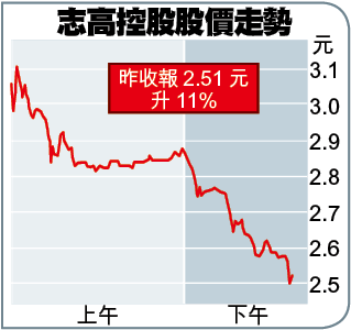 志高昨掛牌首15分鐘,股價最高曾升至3.12元,較招股價升37.44%,之後輾轉向下,收市前曾見2.5元;全日成交9712萬股,成交額2.79億元。