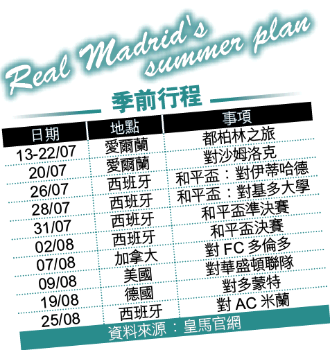 隨着皇家馬德里於周一啟程赴都柏林展開集訓,象徵新銀河艦隊正式啟航。若說以基斯坦奴朗拿度(C朗)為首的眾星是主角,則新帥比歷連奴就是那個須把事事化零為整的導演;而他似已對C朗的觀感、球隊季前部署、前朝遺留下的荷蘭兵及失敗收購等有一套看法,並為領軍衝擊球壇秩序謀定戰略。