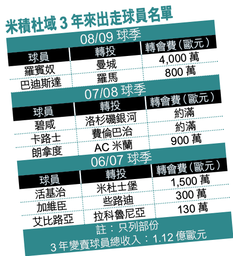 米積杜域在任首季,將12名球員出售卻僅令球會進賬3,380萬歐元;翌年更放走名牌球員如朗拿度、碧咸及卡斯辛奴等。及後再斥資逾1億歐元買入像比比、洛賓及史奈達等貴價貨,使高層不滿;尤其比比身價更達3,000萬歐元(上季動粗,來季仍要停4場),傳媒與球迷俱認為物非所值。此外皇馬雖於06/07、07/08球季奪得西甲冠軍,但歐聯一直是皇馬頭號目標,連續5屆於16強出局,高層豈會收貨?