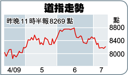 開市後兩小時(本港昨晚11時半),道指升123點,報8269點;納斯達克綜合指數漲21點,報1777點。歐股造好,英、法、德股市尾段升1.65%至2.7%。美國財長蓋特納在《CNN》頻道表示,當地經濟即將展現強勁復蘇。