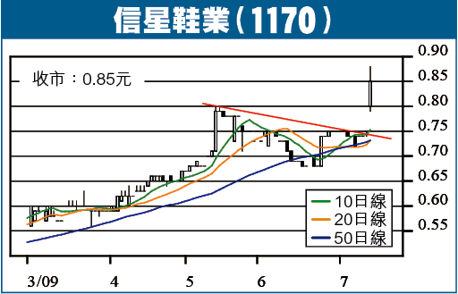 信星鞋業(1170)昨公佈業績,股價急升13%,近期若干工業股於業績公佈後均有好表現,反映早前市場忽略工業股。