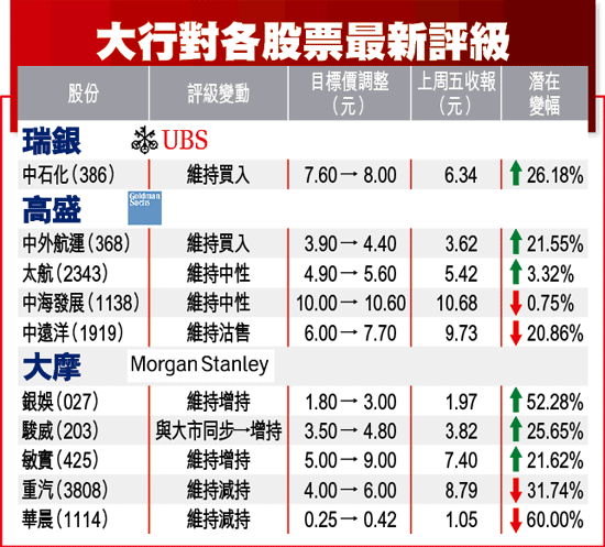 摩根士丹利料下半年澳門賭業收入增長至4%,明年收入增幅達15%。該行遂看好濠賭業前景,首選推介銀河娛樂(027),目標價大幅調升67%至3元,升值潛力達52%。大摩指,銀娛可望於年底落實執行碼佣上限,將有助提升集團盈利,料令旗下星際娛樂場後年未計利息、稅項、折舊及攤銷前盈利急升27%。隨着銀娛位於路氹的銀河度假城明年開張,其盈利將進一步改善。大摩預料銀娛今年盈利將轉虧為盈,純利料8.71億元,明年及後年盈利為4.11億及11.23億元。現時該股企業價值僅6倍。