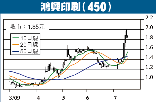 上周印刷股勁升,源自新洲印刷(377)的投機性買賣,鴻興印刷(450)亦被明顯帶起,不過兩者升後俱告回落,鴻興調整幅度相對較小,畢竟是行業龍頭,並已獲CVC成為主要股東。