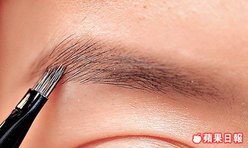 要突出眼部輪廓,就要配合靚眉,畫眉並不困難,輔以眉掃協助便可。眉掃突出的角度可清楚地美化眉形,堅硬的毛質使眉毛輪廓更易定位。