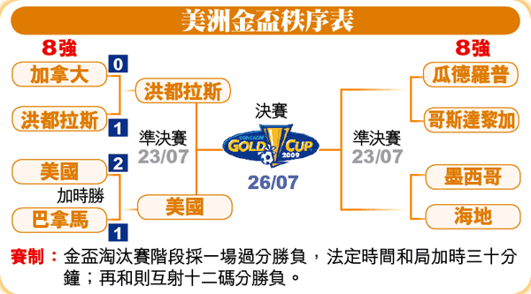 至於另一場8強賽,洪都拉斯憑禾達馬天尼斯12碼建功,1:0淘汰加拿大,將與美國爭入決賽。