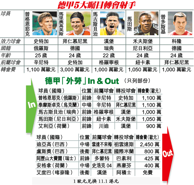 禾夫斯堡射手加菲迪及迪施高上季在德甲射手榜包辦連贏位,分別入了28球及26球,但將面對國內轉倉及外來射手的挑戰,隨時相形失色。