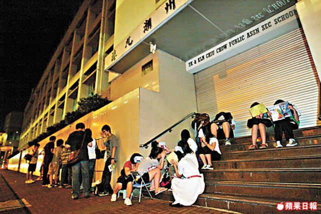 旺角潮州公學門外昨晚出現一條20多人的人龍,準備今天申請餘下的中六學額。