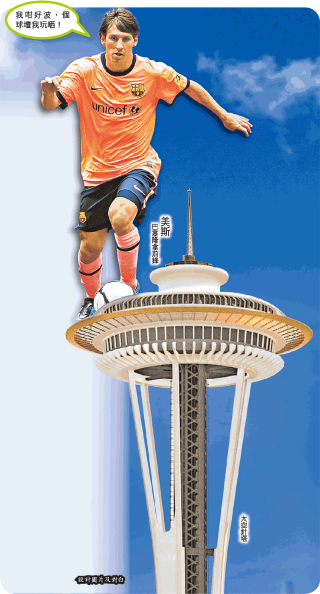 皇家馬德里今個夏天狂燒銀紙,幾乎日日出頭條咁滯,但巴塞隆拿靠一個美斯都搶晒鏡。美斯除咗幫巴塞喺友賽大炒西雅圖海灣者4:0外,賽前仲喺西雅圖嘅地標太空針塔嘅露兩手,擺明話畀皇馬知,佢哋先至係「至高無敵」。
