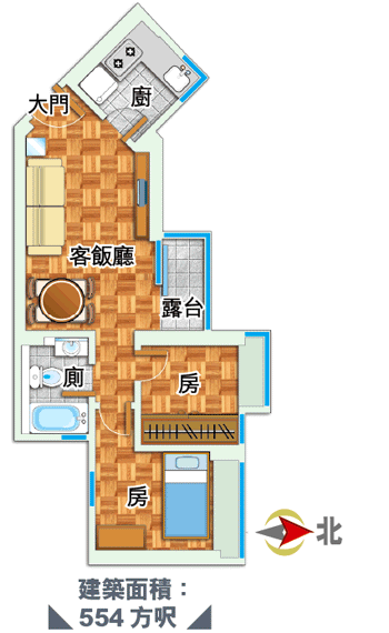 單位有裝修,棄用原裝柚木地板,更換淺木地板,觀感較光亮及時尚。由於房間小,窗台加建睡床。惟廚廁屬原裝,保養一般。現時叫價250萬元,以面積515方呎計,呎價4854元,屬市價。